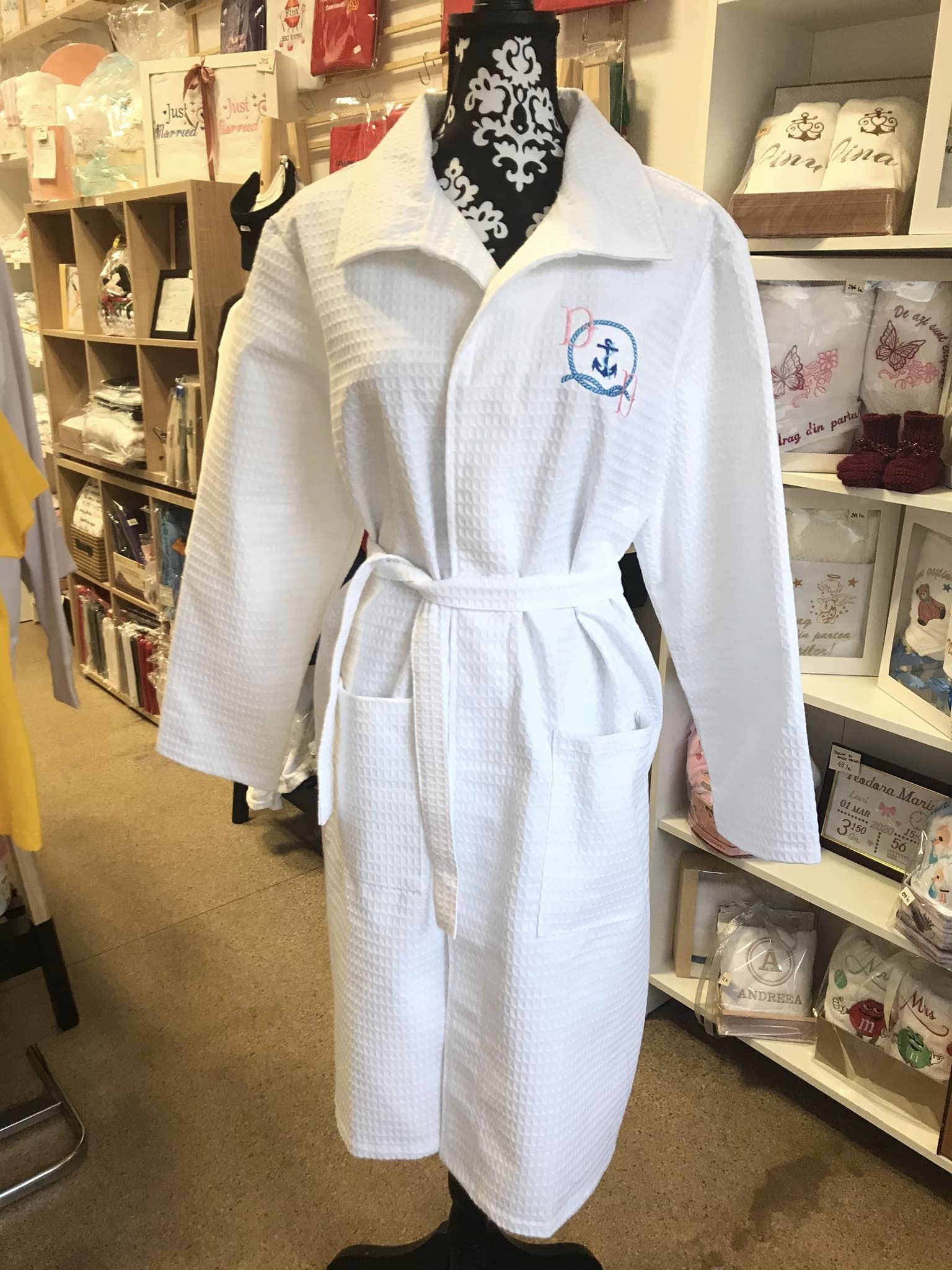 Halat 100% bumbac cu broderie faţă şi mânecă