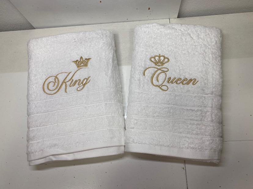 King Queen Set 2 Prosoape 100% bumbac 70×140 cm personalizat