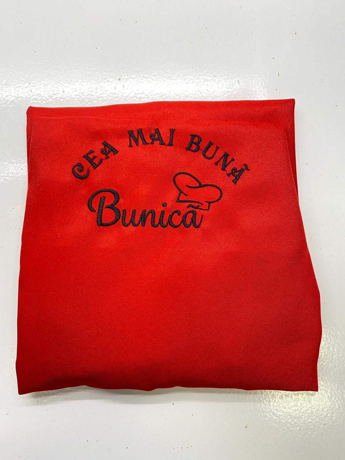 Acest tip de șorț este excelent pentru a personaliza aspectul bucătăriei.Un șorț de bucătărie brodat cu mesaj este o modalitate de a-ți arăta personalitatea. Poți alege să brodezi un mesaj amuzant, un mesaj inspirațional sau chiar un mesaj de dragoste pentru partenerul tău.